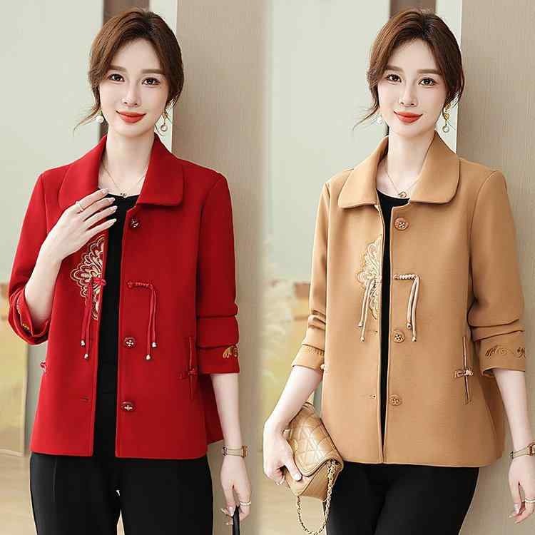スプリングコート レディース ミセス 女性用 ショート丈 花刺繍 コットンポリエステル チャイナ風 ・・・
