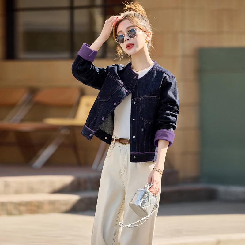 デニムジャケット レディース 韓国風 配色 アウター ショート丈 Gジャン ジャンパー ブルゾン カ・・・