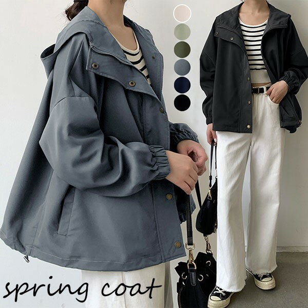 スプリングコート レディース 春 コート ジャケット アウター ショート フード付き 無地 シンプル・・・