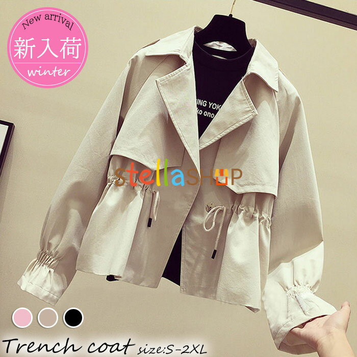 ショートコート レディース 裾ドローコード付き 春服 着瘦せ 脚長効果 秋 アウター 春 ショート丈・・・