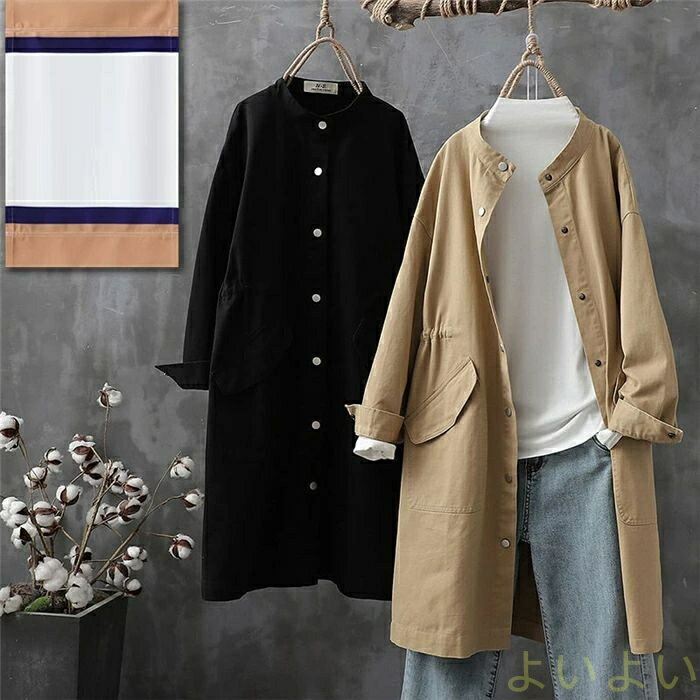 【送料無料】トレンチコート レデイース スプリングコート ゆったり 春秋 着回し 無地 スタンドネッ・・・