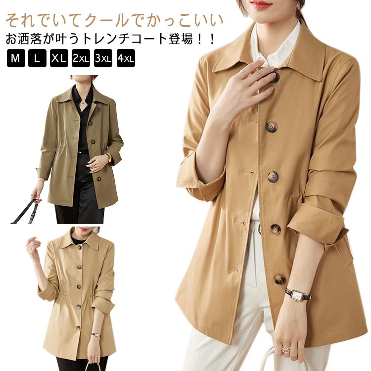 トレンチコート レディース ミドル丈 春夏 スプリングコート アウター 上品 エレガント きれいめ ・・・
