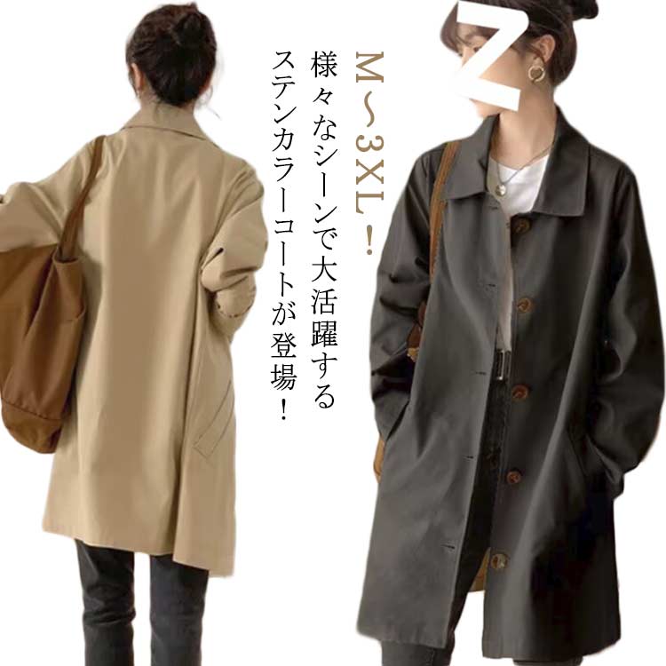 送料無料 ステンカラーコート レディース ミディアム トレンチコート 春 秋 アウター スプリングコ・・・