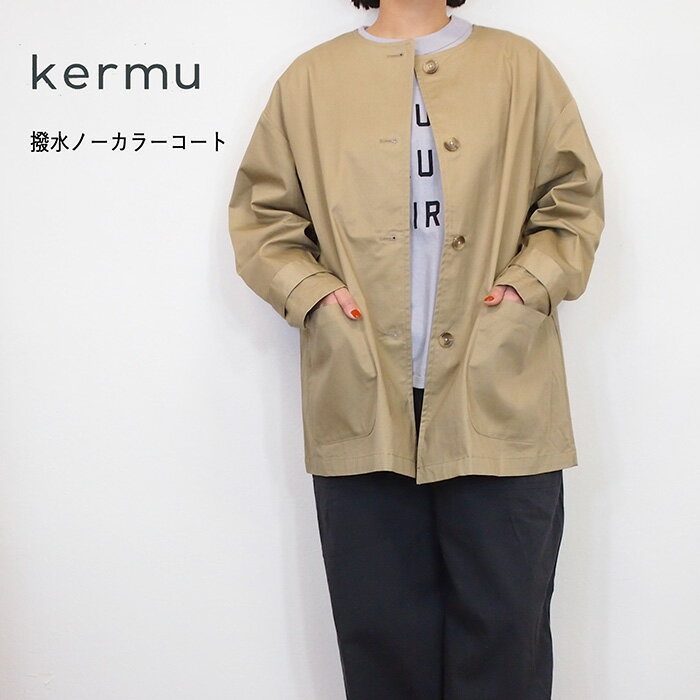 kermu ケルム コットンツイル 撥水加工 ノーカラ— コート 春 レディース 長袖 ゆったり 重・・・