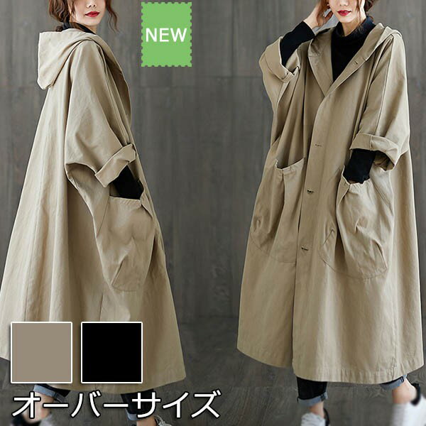 【新発売限定記念価格!】トレンチコート 大きいサイズ 春 ロングコート フード付き きれいめ ジャケ・・・