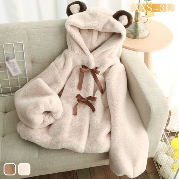 もこもこコート レディース 萌え萌え系 ボアコート クマ耳 中綿 フード付き 大きいサイズ かわいい・・・
