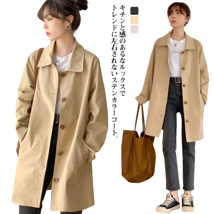 ステンカラーコート スプリングコート レディース ロングコート ミドル丈 大人 女性 春コート 薄手・・・