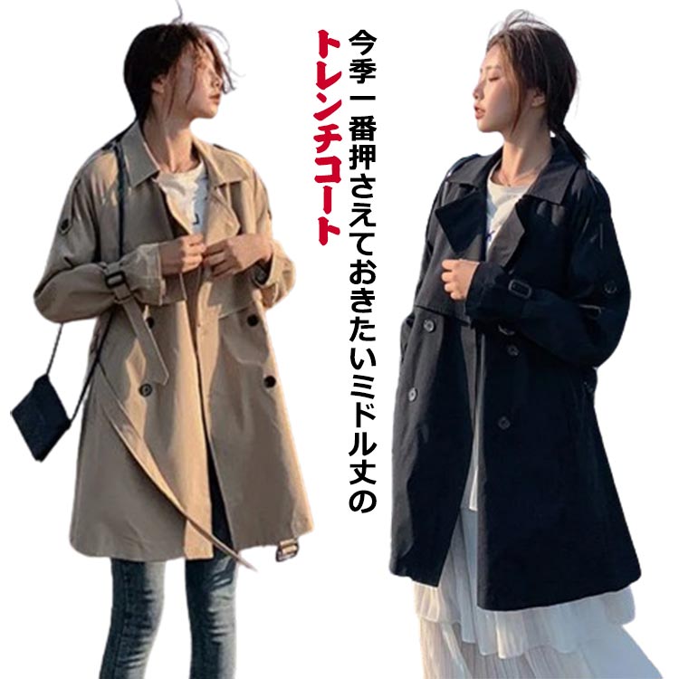 トレンチコート ミドル丈 レディース コート 春コート スプリングコート 薄手 春アウター 裏地付き・・・