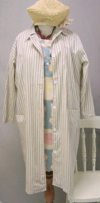 『merlot』春秋向け〜麻混薄手のロングストライプコート〜(ベージュ)(春・秋) レディース トッ・・・