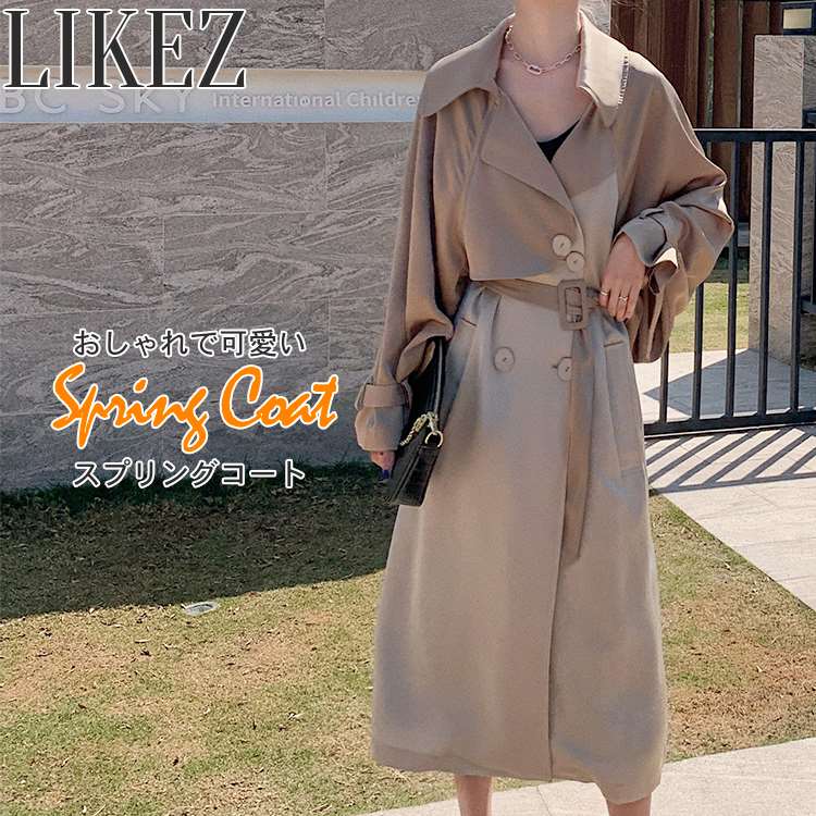 スプリングコート 長袖 ゆったり レディース 春 秋 アウター かわいい おしゃれ ベージュ S/M・・・
