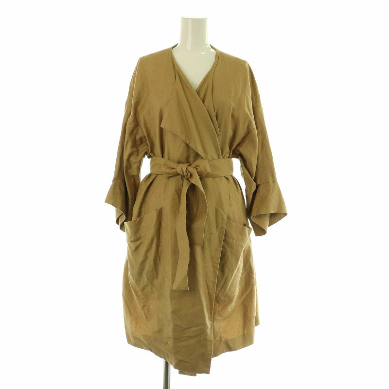【中古】サクラ SACRA スプリングコート ラップコート ノーカラー リネン混 ベルト付 38 ベ・・・