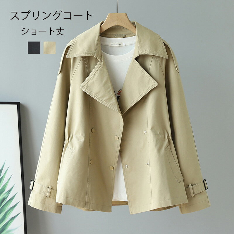 スプリングコート ショート レディース トレンチコート 春 アウター ショートコート オーバーサイズ・・・