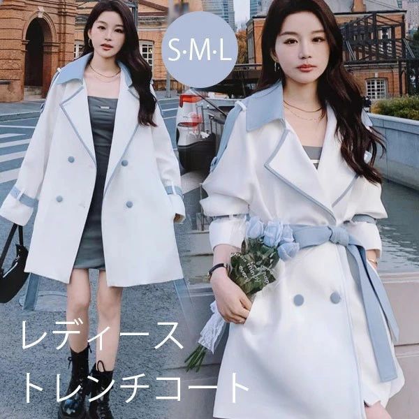 トレンチコート レディース セーラー 春秋コート ミディアムコート イギリス風 スプリングコート 春・・・