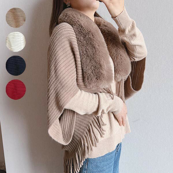 ケープコート マントコート レディース ポンチョストール ゆったり フェイクファー スプリングコート・・・