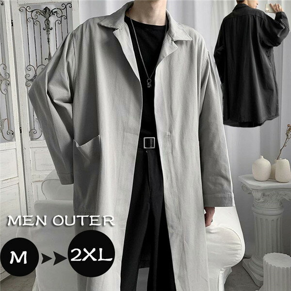 韓国風トレンチコートメンズスプリングコートドロップショルダー春コートロングトレンチコート春秋アウター・・・