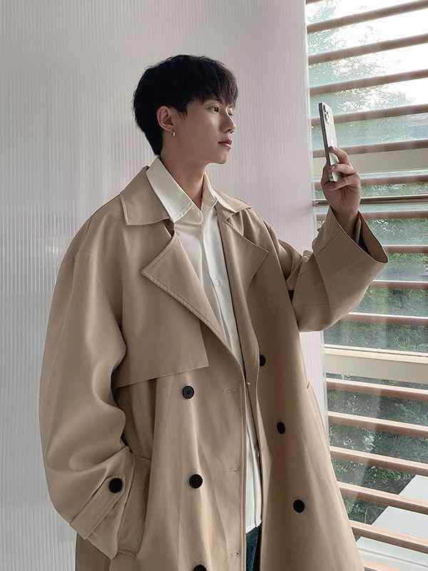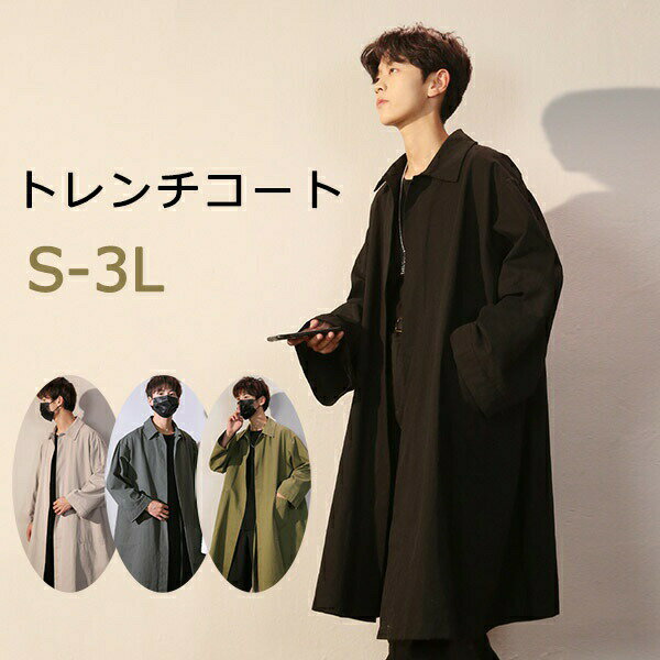 トレンチコートメンズスプリングコート春コートロングトレンチコート膝丈春秋アウター春物春服シンプルカジ・・・