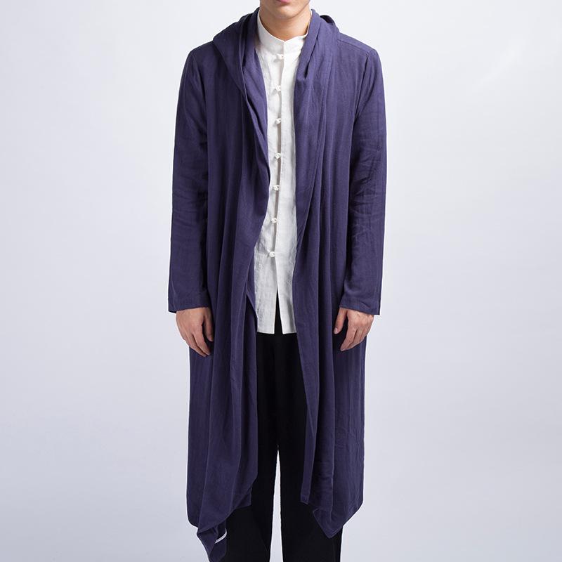 コート メンズ 男性用 スプリングコート 薄手 綿麻 中国風 ロング丈 カジュアル 普段使い フード・・・