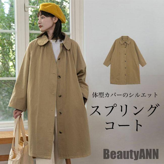 スプリングコート レディース 春 コート 体型カバー ゆったり ラグラン袖 トレンチコート 秋 アウ・・・