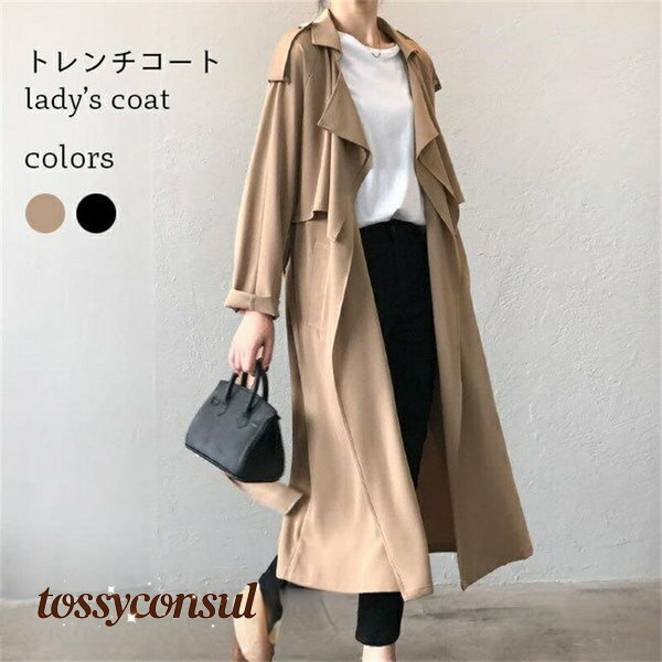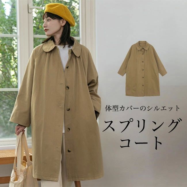 スプリングコート レディース 春 ロングコート ラグラン袖 レトロ トレンチコート 通勤 アウター ・・・