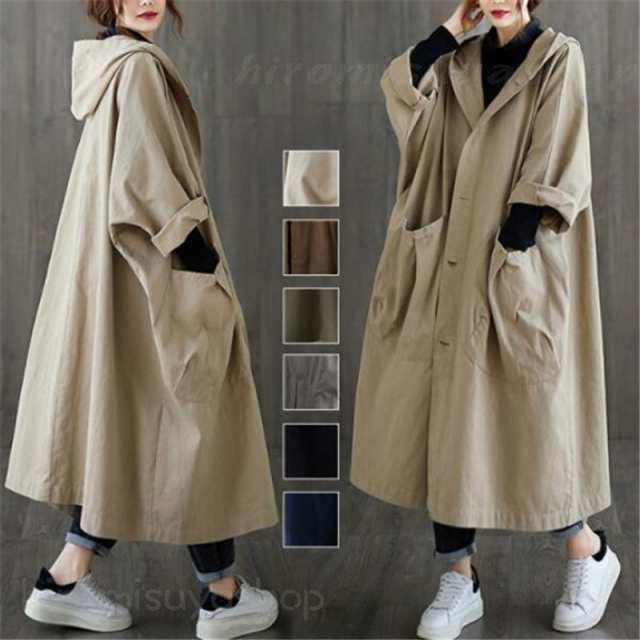 トレンチコート レディース スプリングコート ロング フード付き チェスターコート 春 マウンテンパ・・・