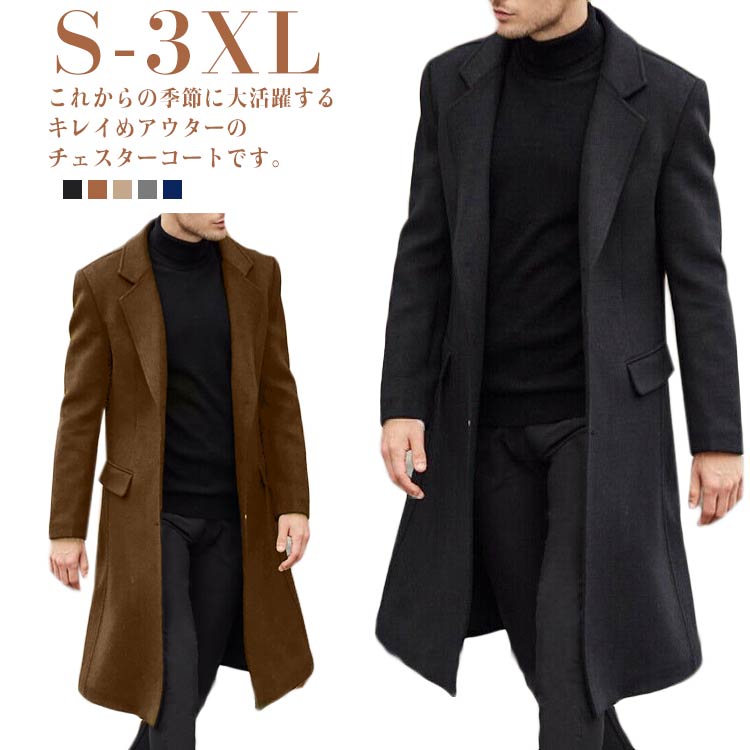 送料無料 大きいサイズ チェスターコート 上品 ロングコート ビジネスコート メンズ アウター 通勤・・・