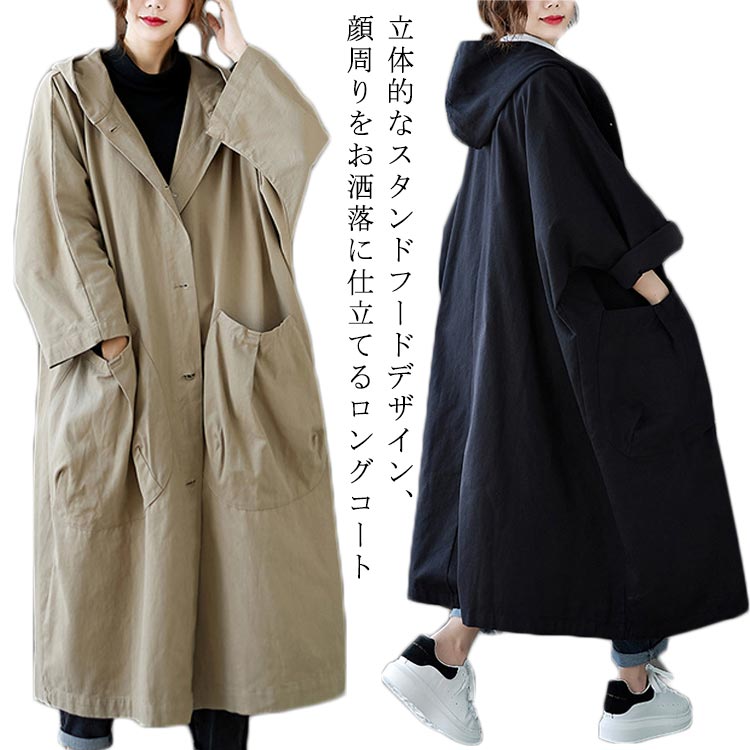 トレンチコート ロングコート レディース 春 長袖 きれいめ スプリングコート フード付き ジャケッ・・・