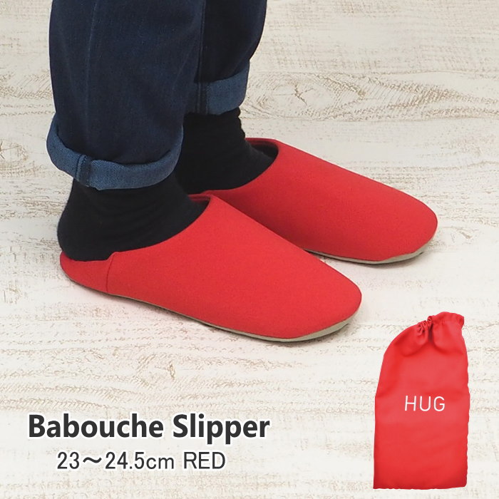 [あす楽] [HUGバブーシュスリッパポーチ付き レッド] スリッパ 携帯 ルームシューズ A565・・・