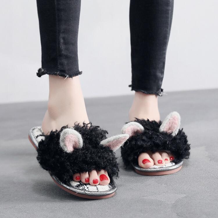 2カラー レディース スリッパ ウサギ耳 ウサギ チェックルームシューズ 室内 春 冬 もこもこ 天・・・