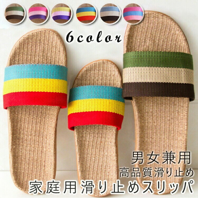 【全店2足送料無料】 スリッパ 前開き 亜麻生地 夏用 縞柄 子供 大人 サイズ選択 厚底 軽量 家・・・