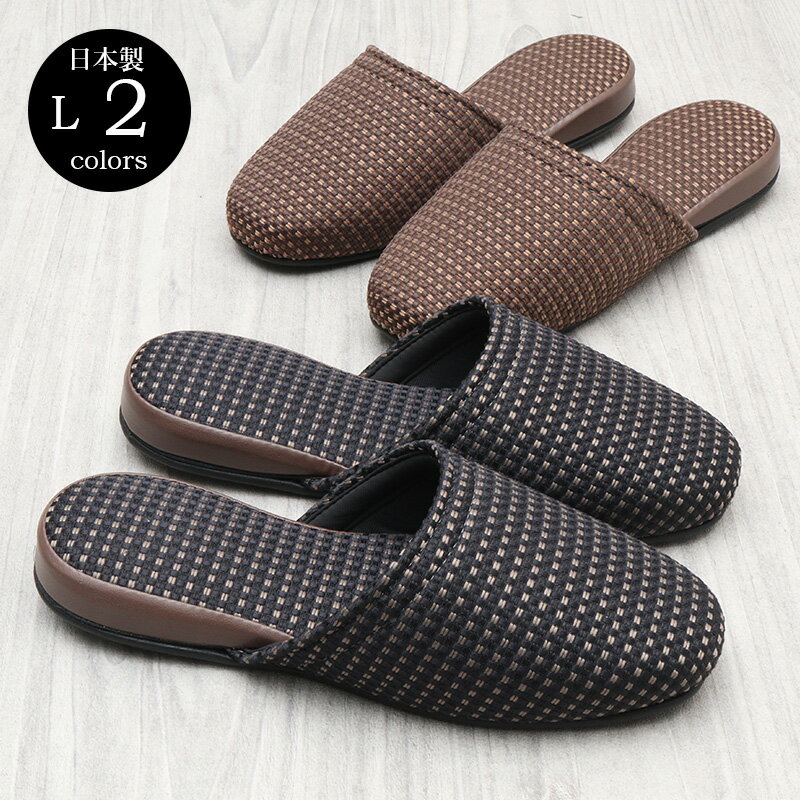 日本製 ドビー織り吊り込みスリッパ Lサイズ [メンズ 紳士 室内履き 来客用 27cm ギフト 父・・・