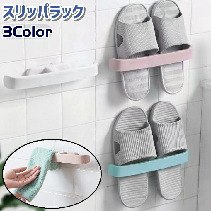 送料無料 スリッパラック スリッパスタンド スリッパ立て タオル掛け 壁掛け式 粘着式 シンプル ス・・・