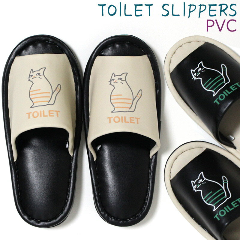 トイレスリッパ PVC お座りネコ Mサイズ おしゃれ かわいい 前開き ビニール 拭くだけ