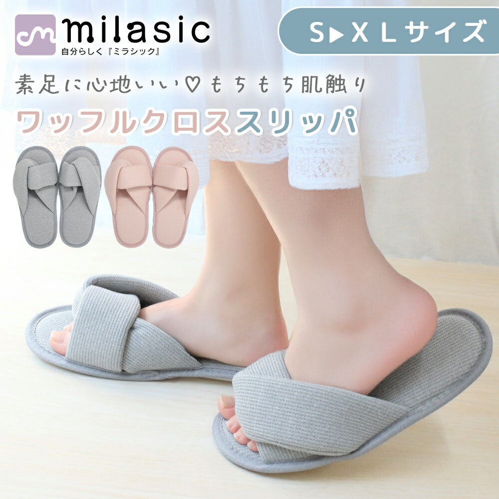 【MILASIC公式】 男女兼用 ワッフル クロス スリッパ ユニセックス ルームシューズ 室内履き・・・