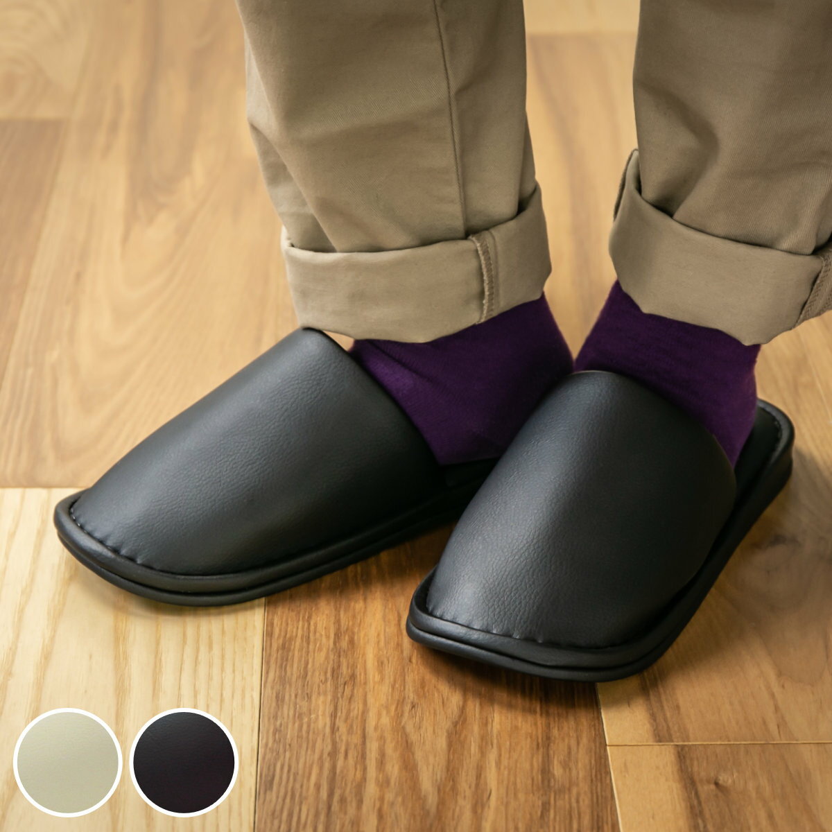 スリッパ マッドビニールレザー Lサイズ ( ルームシューズ ルームスリッパ 室内用 メンズ ビニー・・・