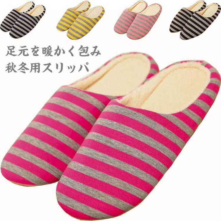 ルームシューズ 静音 22-26.5cm スリッパ メンズ レディース 室内履き ボーダー柄 秋冬 ・・・