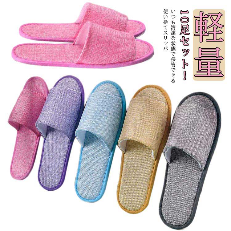 使い捨てスリッパ 10足セット メンズ レディース 麻 軽量 業務用 来客用 旅行用 ホテル用 入院・・・