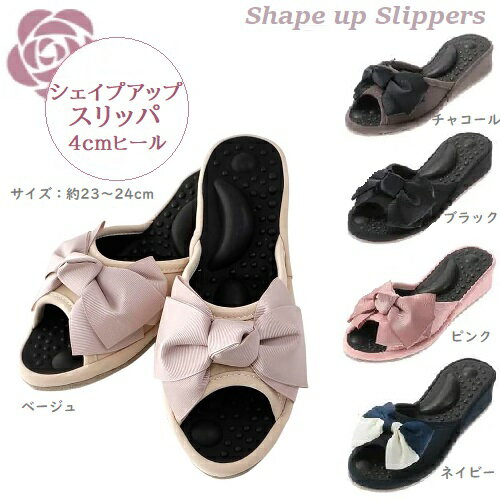 【ヒールスリッパ】【リボン】ヒール スリッパ シェイプアップスリッパ