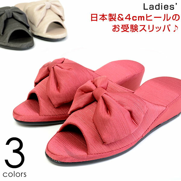 日本製 4cmヒール 美脚 スリッパ お受験スリッパ ヒールスリッパ ルームシューズ 室内履き リボ・・・