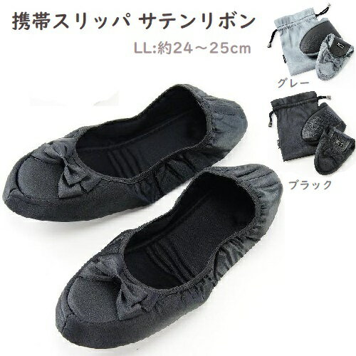 【携帯スリッパ】【おしゃれ】携帯スリッパ サテン リボン LL