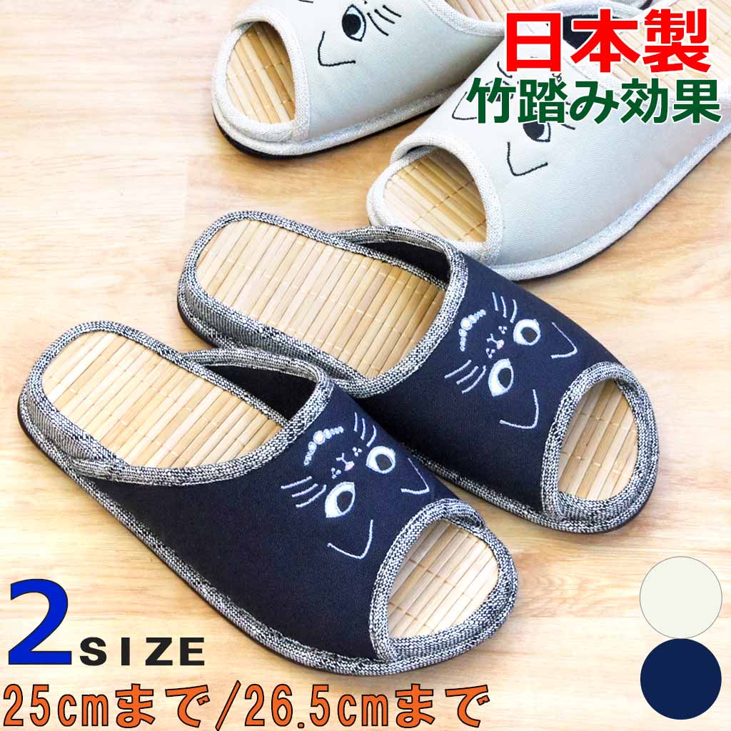 スリッパ ハキハキ工房 Dセノーテぱっちりネコ刺繍 竹踏み 2サイズ 日本製 土踏まず刺激