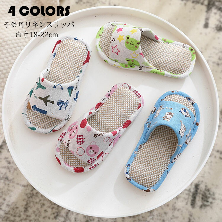 スリッパ 子供用 ルームシューズ キッズ 女の子 男の子 夏用 動物柄 室内用リネンスリッパ 部屋履・・・