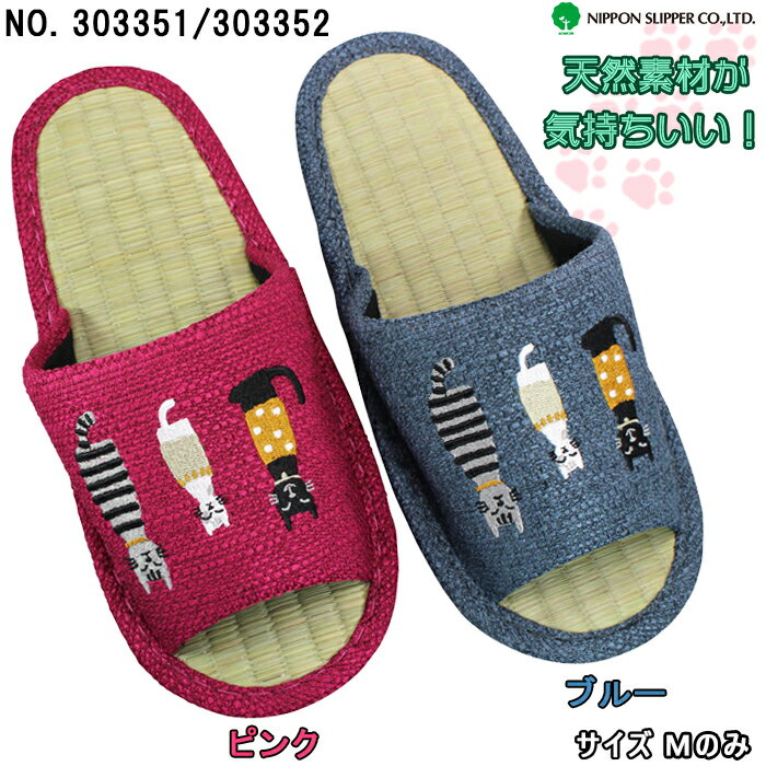【エントリーでポイント5倍⇒11/27(木)1:59迄】 ねこ柄いぐさスリッパ 303351 ピンク・・・
