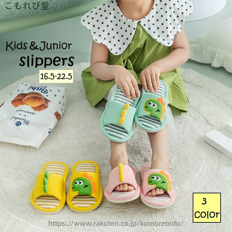 【送料無料】かわいい 怪獣 恐竜 ボーダー オープントゥ 前あき 室内履き 女の子 男の子 子供 ジ・・・