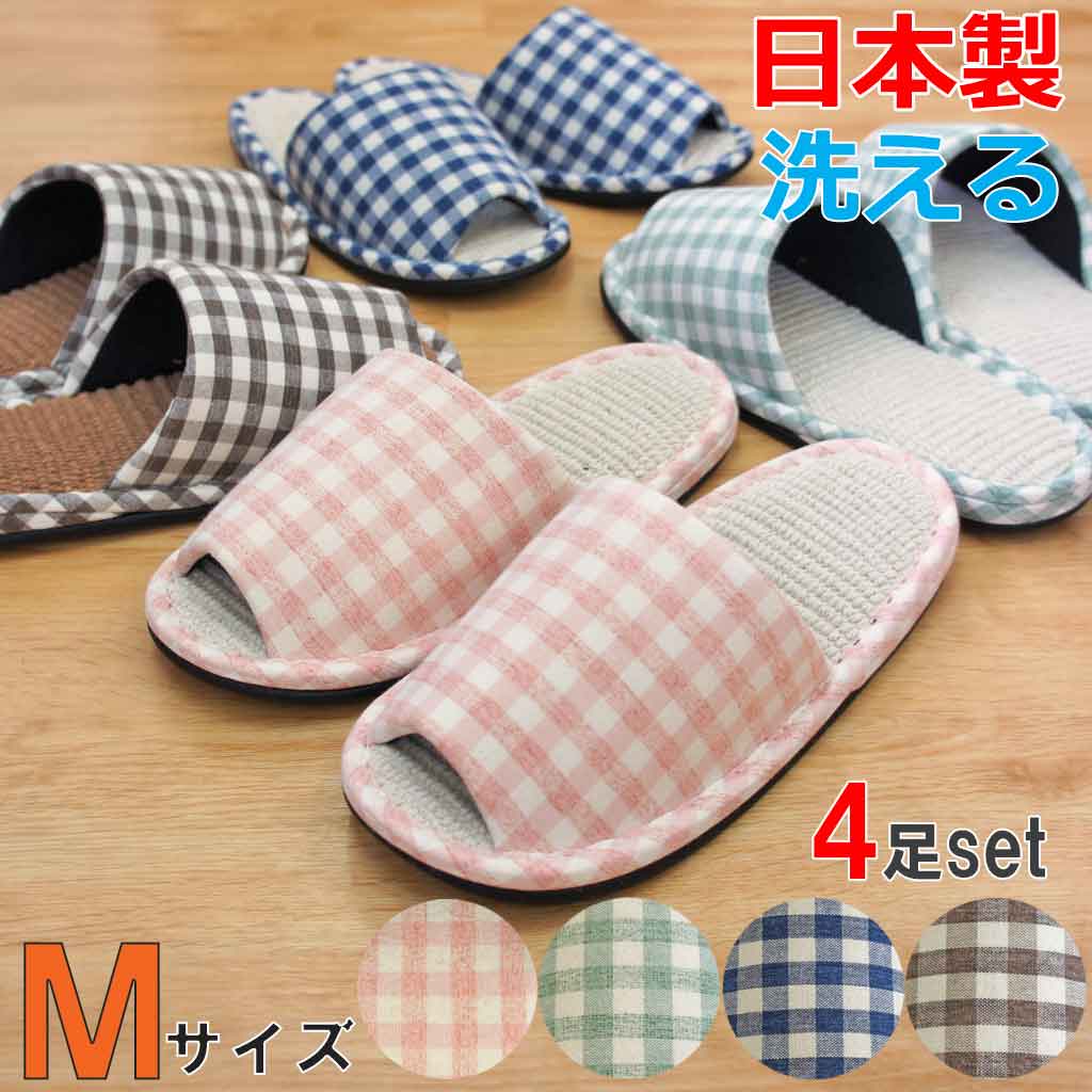 スリッパ セット カラーチェック中インド綿外縫い Mサイズ 約25cmまで 日本製 4足セット ゆっ・・・