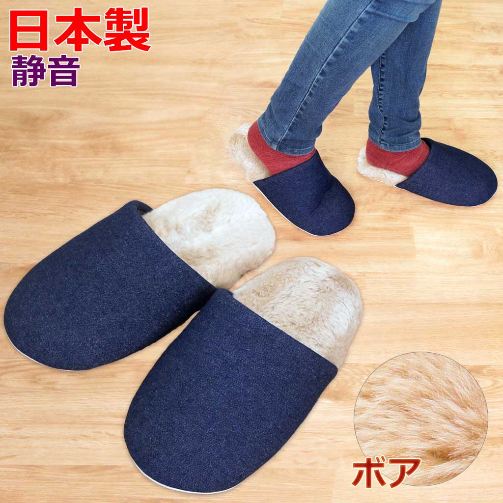 スリッパ 温かい デニムボアクニャック 約26cmまで 日本製 静音 秋冬 柔らかい