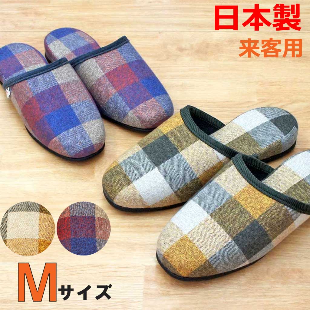 スリッパ 起毛 タータン チェック Mサイズ ウール入り 日本製