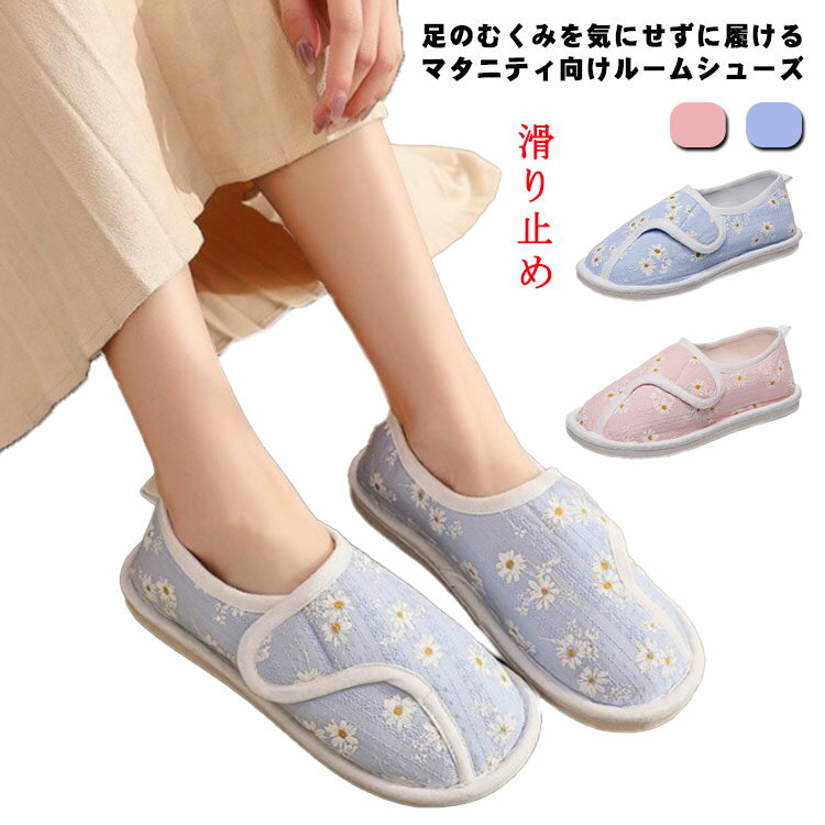マタニティ ルームシューズ 綿カーゼ 妊婦用 妊娠中 靴 スリッパ 浮腫み マジックテープ 足のむく・・・