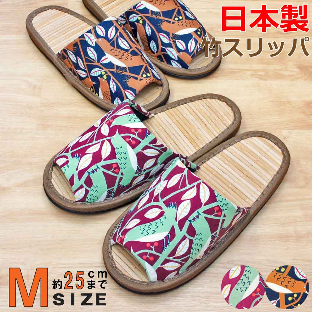 竹 スリッパ 果実と鳥中竹外縫い Mサイズ 約25cmまで 日本製
