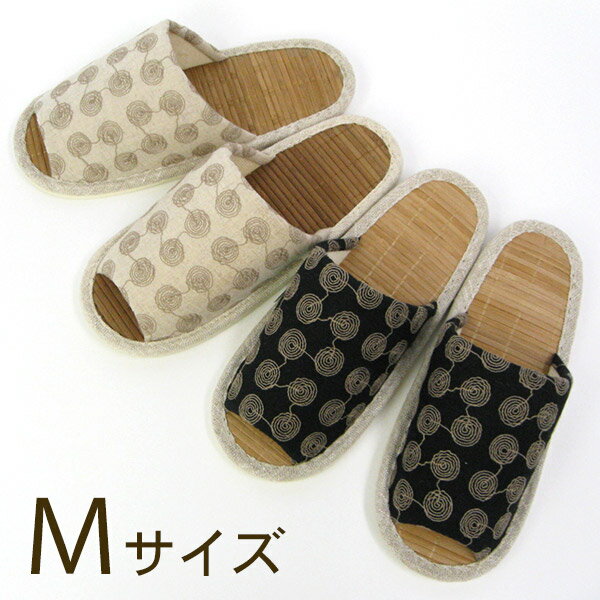 麻混 うずまき刺繍 竹素材スリッパ Mサイズ おしゃれスリッパ