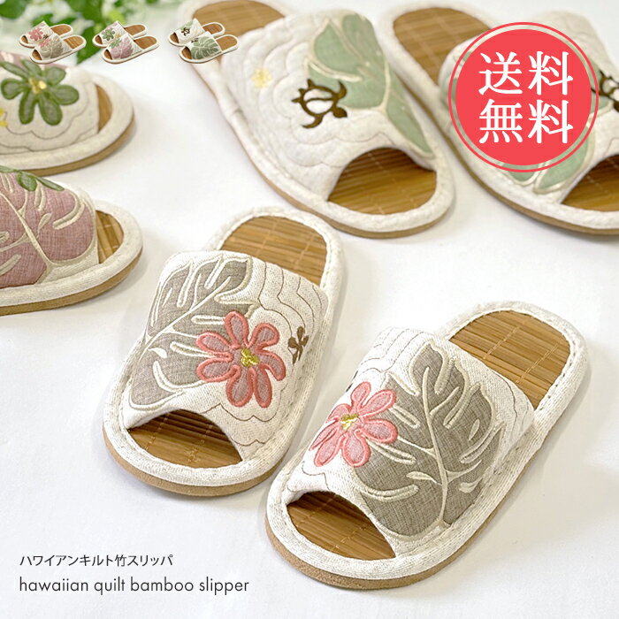 メール便送料無料 ハワイアンキルト 竹 スリッパ 【 前あき 室内 涼しい サラサラ バンブー 素足・・・